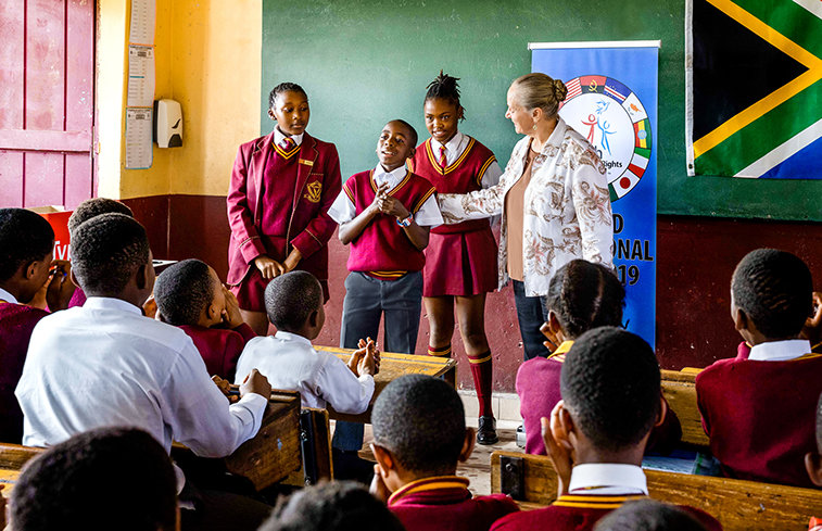 הוא התחיל בדרום-אפריקה, שם המלך תומס אדגר בראון מממלכת קויסן (Khoisan) הלאומית קידם את פני הקבוצה. פרופסורים מהאוניברסיטה, מנהיגים דתיים, אנשי אכיפת החוק, ארגונים לא ממשלתיים והקהילה התכנסו לשתי ועידות על חינוך לזכויות האדם. ואז הועברו סדנאות בבתי-ספר באלכסנדריה ובסווטו.